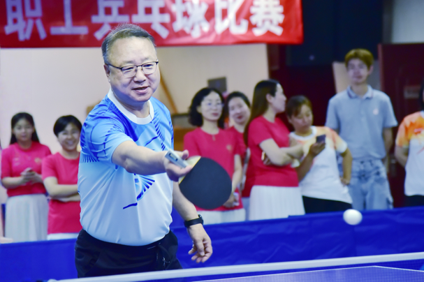 比賽激烈有序,多場比賽打滿局數,比分膠著,懸念迭起。選手們全神貫注,小小的乒乓球在他們手中仿佛擁有了生命,發球、拉球、扣殺,每一次精彩的多拍回合都贏得滿堂喝彩,展現了中國紡聯職工勇于勝利的風采與活力。一天的激烈鏖戰后,中國紡聯會長孫瑞哲和副會長徐迎新分別與參賽選手代表進行了友誼賽,將全場氛圍推向高潮。 ![]() ![]() PART.02