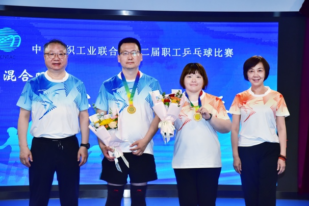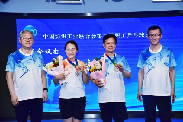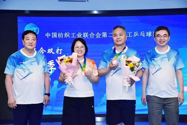 中國紡聯會長孫瑞哲,秘書長夏令敏,黨委副書記陳偉康,副會長陳大鵬、端小平、閻巖分別為獲得混合雙打冠軍的中國紡織出版社有限公司李然、倪天琪,混合雙打亞軍的中國紡織出版社有限公司宋志剛、張宏,混合雙打季軍的中國紡織工程學會伏廣偉、張洪玲頒獎。