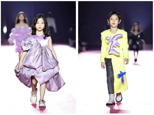 ![]() ![]() 粉色時(shí)空里煙霧突襲,童裝率先從光中走出,倒流或反轉(zhuǎn),Beautyberrykids的亮點(diǎn)在于立體造型完全溶于藝術(shù)化的引導(dǎo)中,夸張?jiān)炀涂蓯郏乱r托跳躍,讓童年獲得純真的夢境,在虛擬感中的審美浸潤讓童裝引發(fā)建設(shè)性的思索。穿粉色西裝的男孩兒“穿越”為男人的交錯(cuò),開啟主線系列的發(fā)布。