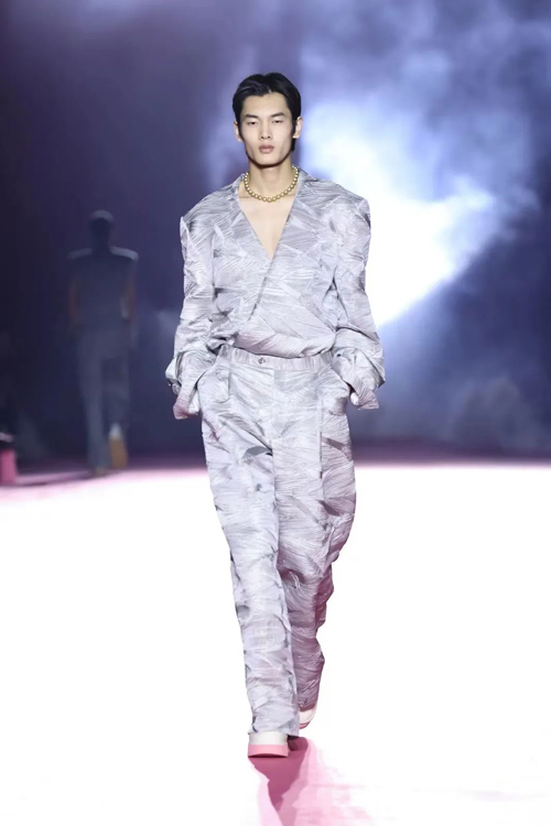 ![]() ![]() 在巨型全粉的露天秀場,沒有人可以置身事外,這是在極短的時(shí)間里,時(shí)裝與藝術(shù)最高頻的對話,也是一切細(xì)節(jié)浮動(dòng)的精彩時(shí)刻。音樂的震動(dòng)隱匿于服裝的流動(dòng)中,模特動(dòng)態(tài)的軌跡被強(qiáng)行拽入時(shí)代的洪流,靜止般“刺入”視線。本季,男性線條流暢與女性線條的剛硬形成對比,在沖突中用色彩抵達(dá)和諧,復(fù)古與未來交織,情緒與行為互補(bǔ),從容踱步,設(shè)計(jì)理念緩緩流淌,即追溯過往,也啟幕新的紀(jì)元。