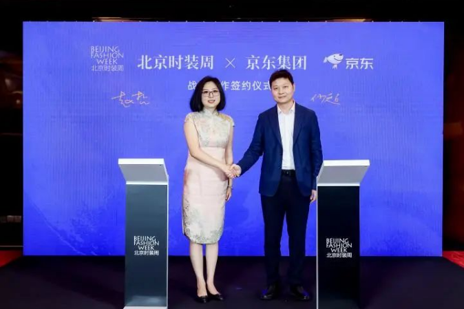 ![]() 北京時裝周有限責(zé)任公司總經(jīng)理趙哲與京東集團(tuán)副總裁、京東零售大時尚事業(yè)部、男女裝業(yè)務(wù)部負(fù)責(zé)人何超共同進(jìn)行京東集團(tuán)與北京時裝周的戰(zhàn)略簽約儀式