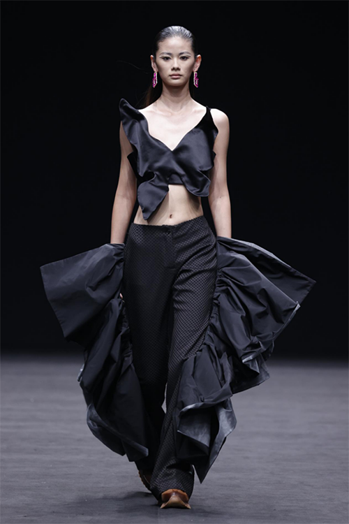![]() ![]() 豐富設計元素間高度和諧的碰撞是對當下社會風貌的還原,對邊界的試探體驗是時裝不斷變革的魅力,也是王鈺濤持續輸出的前提。3D打印的細節裝飾不拘泥于科技左右生活的現狀,雅致印花中和了剩余的游曳。多元鏈接“撞飛”框架,身份的認同體現于款式與線條的自由,愉悅色彩顛覆舊商業秩序的影響,延伸時裝予幼年的快感,跌宕至成人現實中難得的松弛。