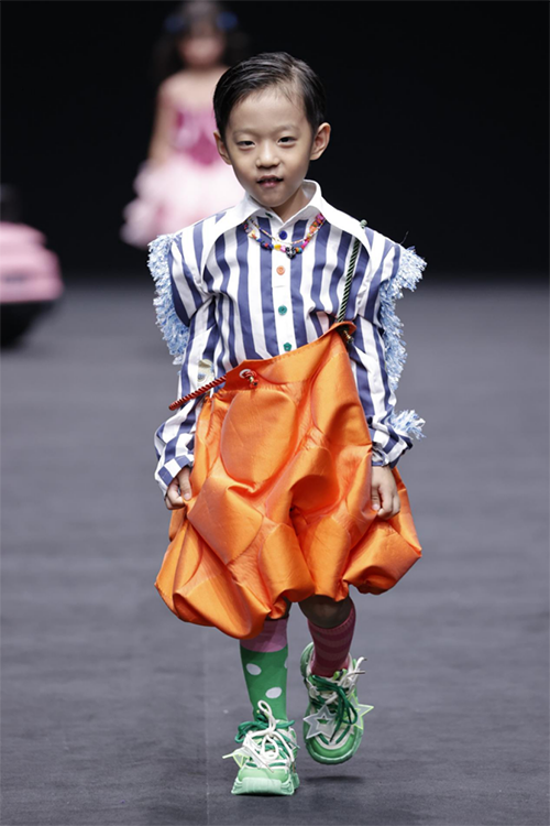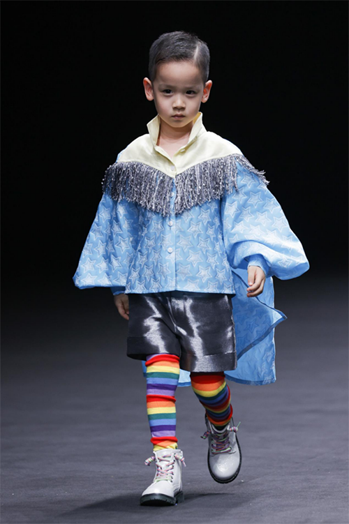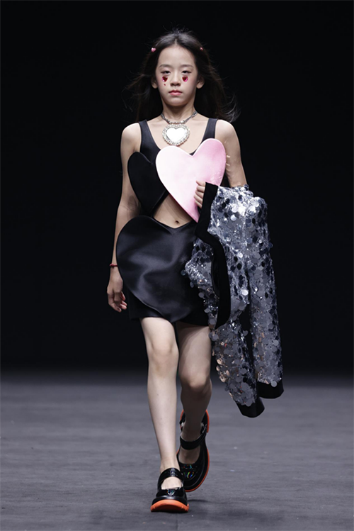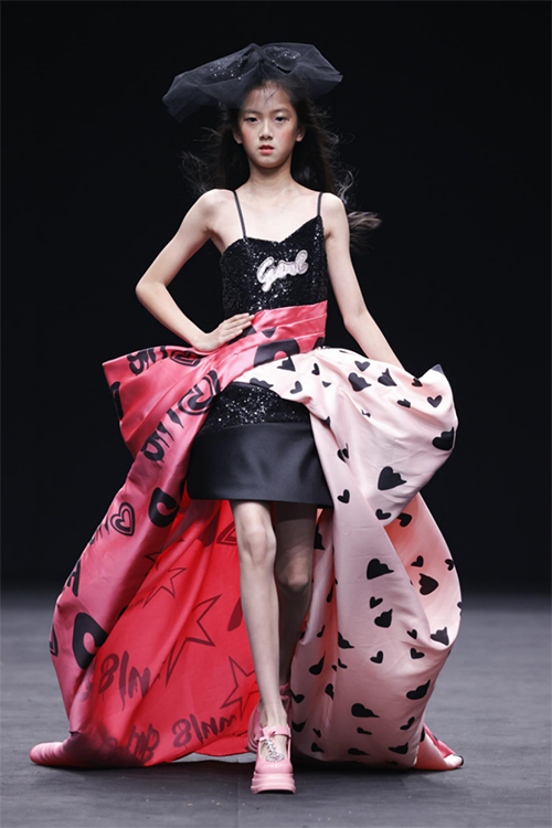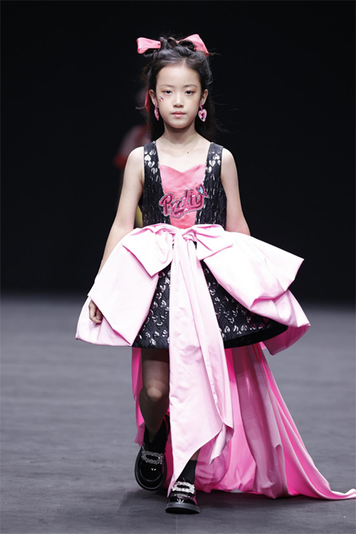 ![]() ![]() ![]() ![]() ![]() Beautyberrykids比以往更添趣味,童模張嚴之一襲拼色粉禮服開場。芭比粉的玩具汽車和小狗的出場營造了一個等比例縮小的成人世界。童裝分割線的游動銜接內在結構的變化,層次錯位、拼或撞的色塊和面料,加上芭比氛圍的BLINGBLING、夸張字母印花都讓禮服增強了成衣效果。范子嬌俏皮的短蓬裙亮相,蝴蝶結與桃心亮片搭配的視覺沖擊將當下兒童的心理狀態,以更寫實的方式推向主觀能動的定位上去,引導成人逐漸尊重孩子的意愿和想法。