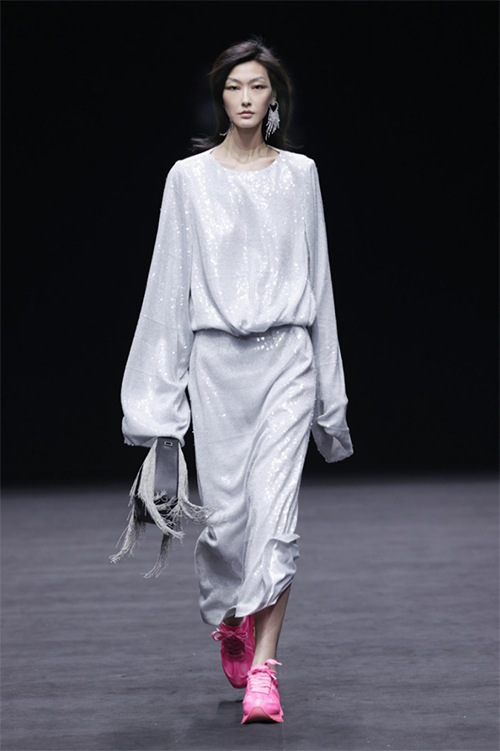 ![]() ![]() 本季,品牌恣意灑脫的態度,多維呈現身體與服裝結構本身的沖突或舒暢,色彩運用中低明度與高飽和純度的對撞呈現層次感,披掛式的結構讓真絲、羊毛、人造纖維等材質在身體上展現不一樣的面料屬性。夸張袖子長度、寬度的比例,讓肩部線條更加流暢,看似隨意搭配穿著的禮服,是本季設計師的主題“表達”的另一種呈現方式。