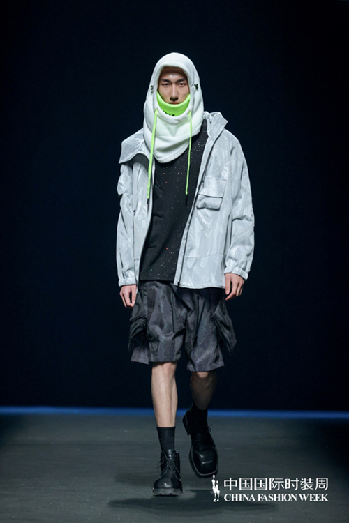 當暗幕中束束強光燃起,身穿發光衛衣的模特們邁著堅實有力的步伐魚貫而出,他們宛如置身于星河中的未來戰士,將我們引入另一個平行的沙丘世界。真維斯·黃剛24秋冬系列大秀就這樣以炫酷的開場震懾全場,將獨具中國特色未來主義的沙丘美學故事娓娓道來。