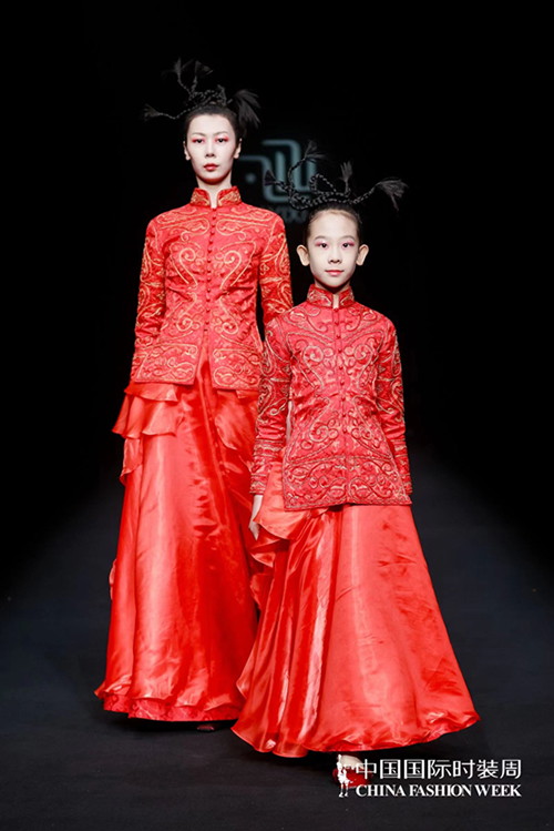 ![]() 國仇家恨,小女孩在一個(gè)冷暗的空間中,災(zāi)難來臨。母親在身旁無能為力,但時(shí)刻給她希望,這位代表希望得到救贖的小女孩Linda Zhang身著乙仙高定“浮翠流丹.白沙”緩緩出場,紅色暗紋服飾搭配亮白色立體手工珠繡蝴蝶結(jié),重疊交錯(cuò),苦難在流動,女孩的心在走向希望,只因前方有光。