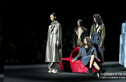 ![]() ![]() 秀場上,從不規則裁剪開始,一針一線,通過掐捏折皺、手工珠串編織、扭花流蘇等設計手法,傳遞手作與織物的聯接。在面料肌理的塑上運用了結構重組、立體印繡等手法。賦予穿著者新的體感,用服裝語言演繹劇場多面的表達。