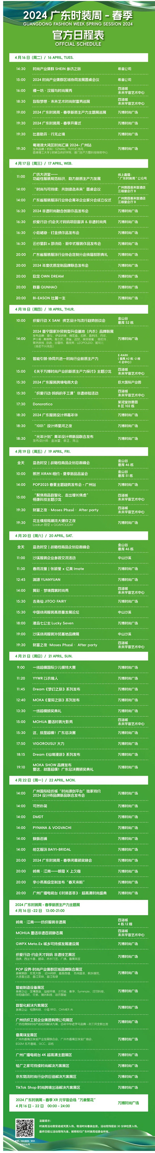 作為廣東省工業(yè)和信息化廳“穿粵時尚潮服薈”重點活動、廣東省商務(wù)廳“粵貿(mào)全國”重點展會和廣州市“時尚發(fā)布平臺”重點活動,2024廣東時裝周-春季(第33屆)落戶千億級數(shù)字快時尚產(chǎn)業(yè)集群廣州番禺,匯聚龍頭企業(yè)、設(shè)計師、供應(yīng)鏈上下游企業(yè)和產(chǎn)業(yè)人才,通過新品發(fā)布、品牌訂貨、時尚展覽等一系列活動,共同奏響時尚產(chǎn)業(yè)的華彩樂章。