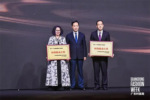 ![]() 番禺區(qū)委黃彪書記為廣東省服裝服飾行業(yè)協(xié)會(huì)、廣東省服裝設(shè)計(jì)師協(xié)會(huì)頒發(fā)“時(shí)尚推動(dòng)大獎(jiǎng)”