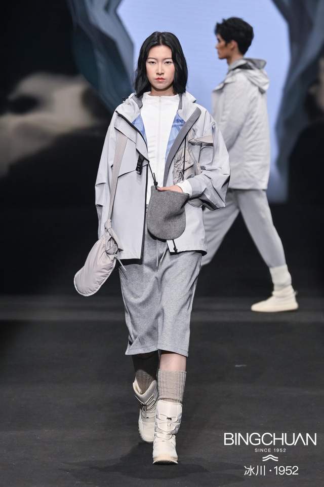 冰川品牌設(shè)計(jì)師梁弘毅(Antonio liang)在接受采訪時(shí)表示,本次的設(shè)計(jì)團(tuán)隊(duì)主要是以解構(gòu)的概念,將多元化的場景解構(gòu)的設(shè)計(jì)手法融入到本次的設(shè)計(jì)當(dāng)中。他提到:“我們用了很多工具,不同場景下所使用的材料也各不相同。我們會(huì)使用一些綠色低碳的面料和可再生的填充物,將多元化的元素植入到設(shè)計(jì)當(dāng)中。”談到如何通過混搭概念重新定義羽絨服的設(shè)計(jì)和使用方式,梁弘毅(Antonio liang)表示:“混搭概念不僅僅是一種設(shè)計(jì)手法,更是一種生活態(tài)度的表達(dá)。我們希望通過這種設(shè)計(jì),讓消費(fèi)者在不同的場合中都能找到適合自己的穿搭方式,重新定義羽絨服的時(shí)尚邊界。”