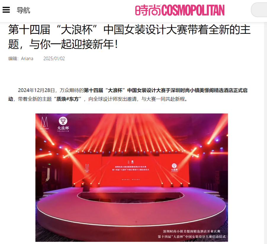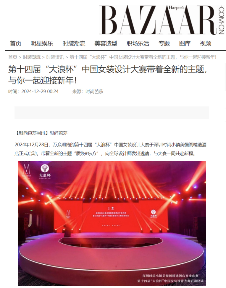 “質煥#東方”第十四屆“大浪杯”中國女裝設計大賽由中國服裝協會、深圳市龍華區人民政府主辦,深圳市龍華區重點區域建設推進中心、《中國服飾》雜志、深圳市龍華區大浪街道辦事處承辦,中國紡織出版社有限公司協辦。