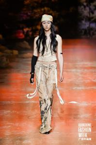 在本次時裝秀上,北江紡織通過冷轉移印花技術,將初語設計團隊的藝術創意,實現不同的圖案、顏色及3D逼真的洗水效果。運用了環保新科技手法,與蒙古傳統文化元素和異域民族的文化元素相結合,呈現出“曠野”之牛仔,既保留了牛仔的粗獷質感,又增添了細膩的藝術氣息,讓初語的“率性由我”的品牌個性躍然“衣”上。