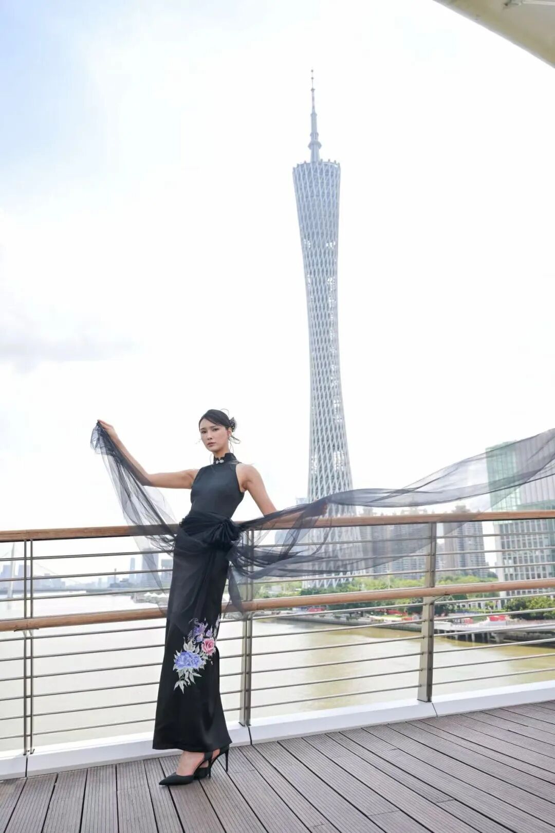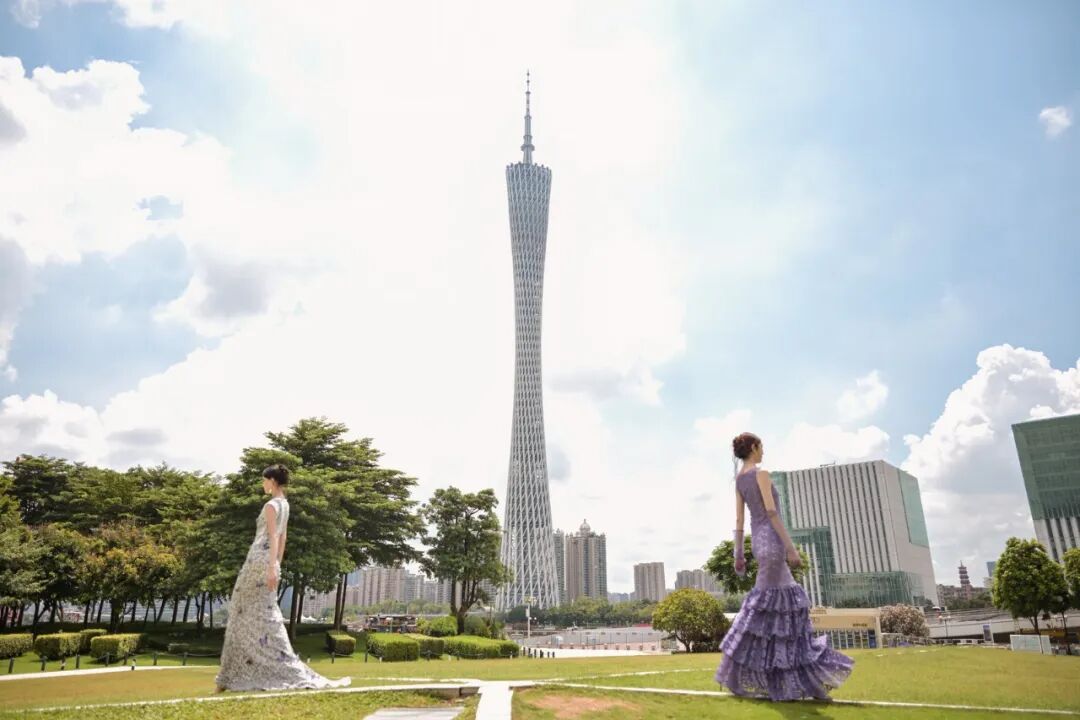 本季發布作品,大量采用真絲、絹紗、歐根緞和品牌自主研發的「繁花」面料等輕盈且有垂墜感的高定面料,融合非遺潮繡、中國傳統珠繡、廣繡與法式鉤針技法,在禮服上繡制玫瑰、玉蘭、牡丹、鳶尾、櫻花等花卉圖案,以及靈雀、蝴蝶等自然生靈。當真絲綃帛綻出潮繡玉蘭,當絹紗褶皺里藏進花信風,「芳菲」從名詞化作動詞,在每一個「她」的步履間,完成一場又一場與美的奔赴。