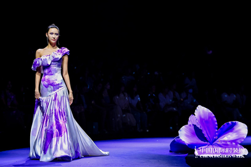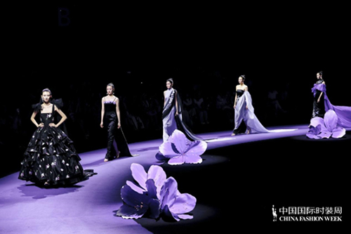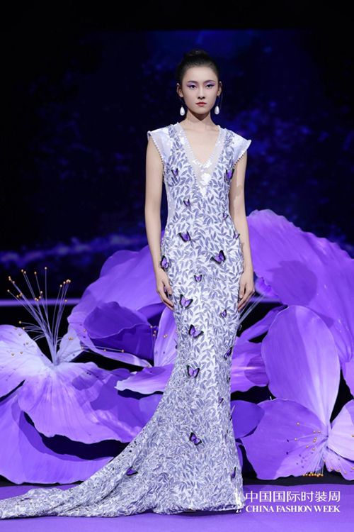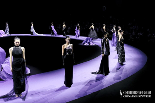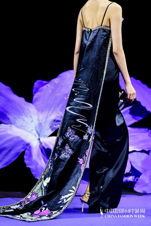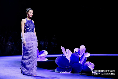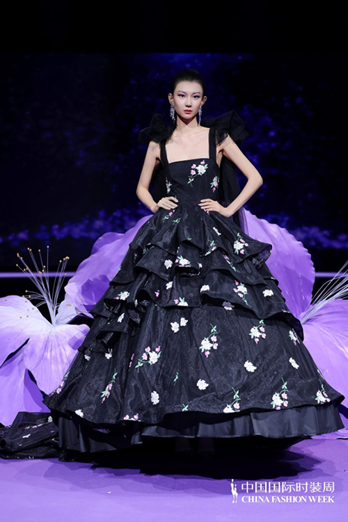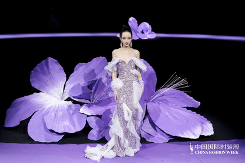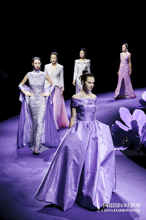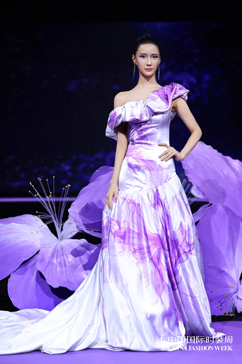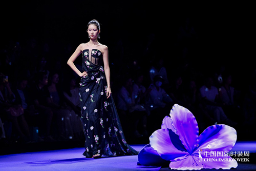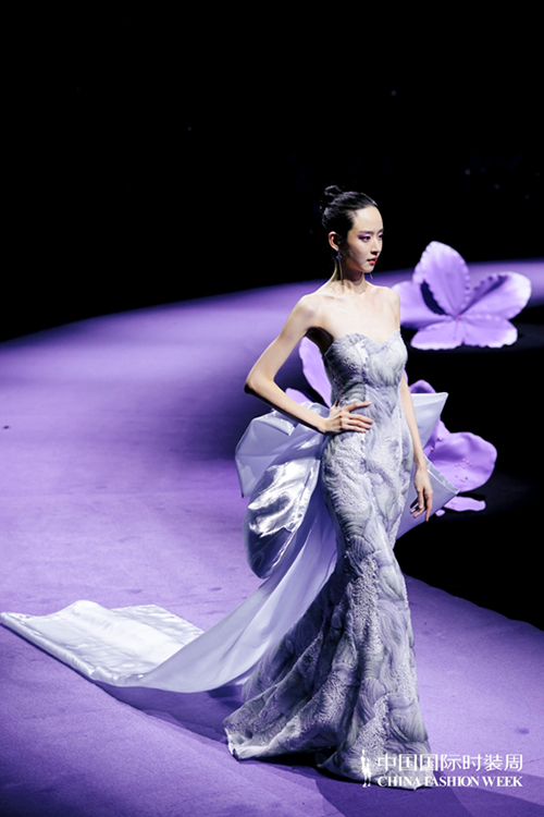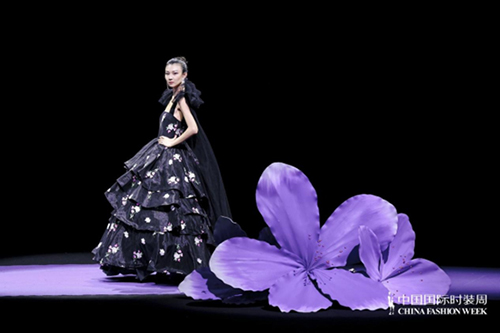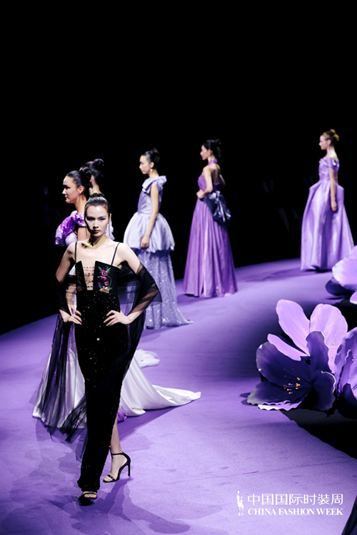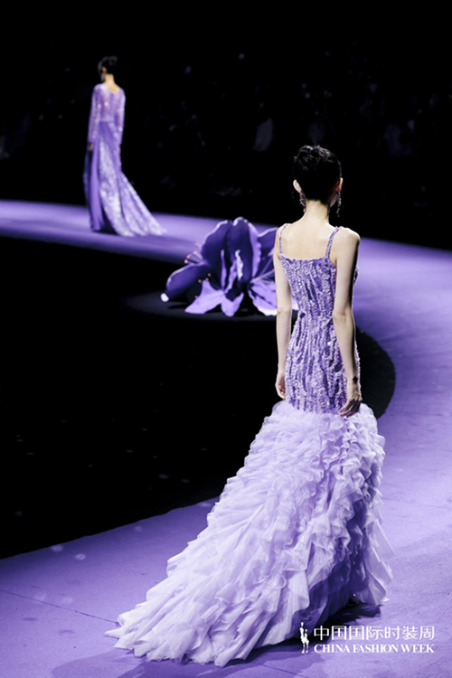 ![]() 步入秀場,觀眾仿佛墜入一個(gè)被施以魔法的東方花園。舞臺以品牌標(biāo)志性的紫荊花為靈魂裝置,延續(xù)經(jīng)典紫色基調(diào),營造出花團(tuán)錦簇、蝶舞鶯啼的夢幻之境。這不僅是品牌十周年的鎏金獻(xiàn)禮,更是創(chuàng)始人關(guān)淑敏以十年以針線作筆、以絲綢為墨,寫給東方美學(xué)的千行長詩。