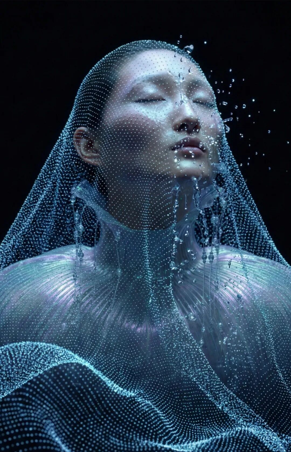 ![]() ![]() 而Soulful Poetic的《琉璃幻夢(mèng)》則讓東方美學(xué)在數(shù)字空間獲得新生。琉璃的透明與重量、易碎與永恒、冷靜與流動(dòng),在鏡面折射與晶體重組中構(gòu)建出錯(cuò)位的時(shí)空幻境。“暖色肌膚與冷調(diào)晶體”的強(qiáng)烈對(duì)比,讓傳統(tǒng)意象成為可算法的詩性敘事。