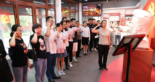 ![]() 在鮮紅的黨旗下,在馬駿烈士雕像前,25名新黨員高舉右拳,在領誓人的帶領下莊嚴宣誓,以錚錚誓言表達了對黨的忠誠和熱愛,表達了為黨和人民奉獻的決心和信念。