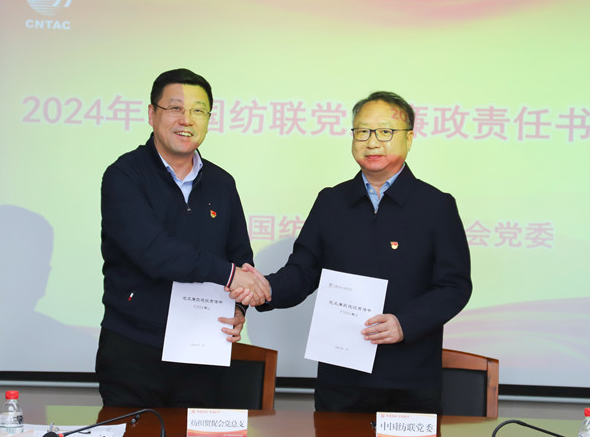![]() ![]() ![]() 會上,孫瑞哲會長代表中國紡聯(lián)黨委分別與中國紡織出版社有限公司黨委、中國貿(mào)促會紡織行業(yè)分會黨總支、中國棉紡協(xié)會黨支部三家基層黨組織負責(zé)人現(xiàn)場簽署《黨風(fēng)廉政建設(shè)責(zé)任書》。