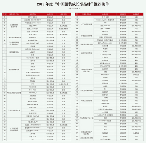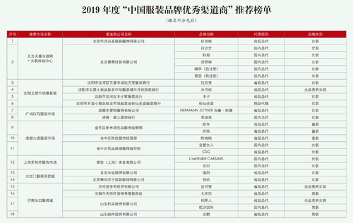 2019年度“中國服裝成長型品牌”和“中國服裝品牌優(yōu)秀渠道商”出爐