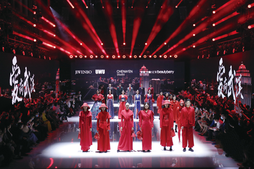 2020武漢時裝周精彩上演 本刊記者-張尚南 11月7-10日,2020武漢時裝周在武漢紅T時尚創(chuàng)意街區(qū)精彩上演,中國紡織工業(yè)聯(lián)合會副會長、中國服裝協(xié)會會長陳大鵬,湖北省委常委、武漢市委書記王忠林,武漢市委副書記、市長周先旺出席活動。 武漢時裝周創(chuàng)辦于2012年,目前已逐步成為武漢拉動時尚產(chǎn)業(yè)發(fā)展、宣傳城市形象的功能性平臺。本屆時裝周的開幕秀邀請了5位中國時裝設(shè)計最高獎“金頂獎”設(shè)計師共同打造了“志愿紅”主題聯(lián)合秀,閉幕秀則由兩屆“金頂獎”得主劉勇帶來了“嗨·色 嗨·武漢”主題大秀。此外,武漢時尚女裝品牌紅人、國際高定品牌Grace Chen、ELLASSAY歌力思等也相繼發(fā)布了新品,為期4天的時裝周共帶來了20場時尚大秀。與此同時,還頒發(fā)了十佳模特大獎、風(fēng)尚設(shè)計大獎、時尚品牌大獎和時尚產(chǎn)業(yè)推動大獎等獎項。