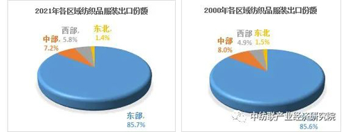 雖然中西部地區(qū)紡織品服裝出口占比較小,但全年有三省市增速超過100%。其中,四川、寧夏、青海2021年紡織品服裝出口增長分別達到110.4%、386.0%和148.2%。 |