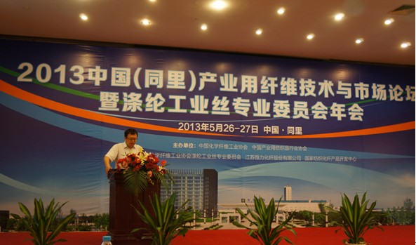 2013年5月26~27日,“2013中國(同里)產業用纖維技術與市場論壇暨滌綸工業絲專業委員會年會”在江蘇同里召開,本次活動由中國化學纖維工業協會、中國產業用紡織品行業協會共同主辦,中國化學纖維工業協會滌綸工業絲專業委員會、江蘇恒力化纖股份有限公司、國家紡織化纖產品開發中心共同承辦。化纖協會端小平會長、中產協李陵申會長,針織協會沈順年副會長、化纖協會趙向東副會長、王玉萍秘書長、中國汽車工程學會張寧秘書長、總后軍需裝備研究所郝新敏博士、東華大學陳南梁教授、全國產業用紡織品科技情報站陳旭煒站長等百余位企業家、專家學者及下游用戶參加了本次活動。