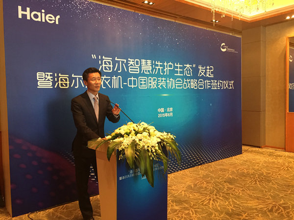陳大鵬表示,中國服裝協會認為海爾智慧洗護生態圈的建立是海爾在互聯網時代下推動洗滌產業發展的重大變革,中國服裝協會愿意和海爾共同推進智能洗護技術的升級。
