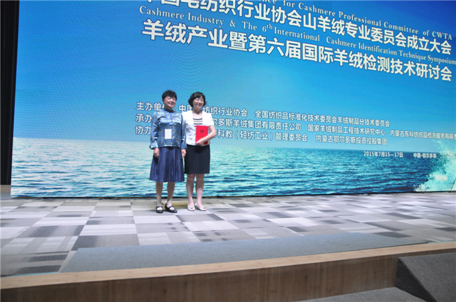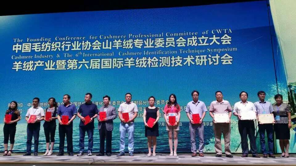 7月15日,由中國毛紡織行業(yè)協(xié)會、全國紡織品標(biāo)準(zhǔn)化技術(shù)委員會羊絨制品分技術(shù)委員會主辦,內(nèi)蒙古鄂爾多斯集團有限責(zé)任公司、國家羊絨制品工程技術(shù)研究中心、內(nèi)蒙古東科紡織品檢測服務(wù)有限責(zé)任公司承辦的中國毛紡織行業(yè)協(xié)會山羊絨專業(yè)委員會成立大會暨第六屆國際羊絨檢測技術(shù)研討會在鄂爾多斯舉行。