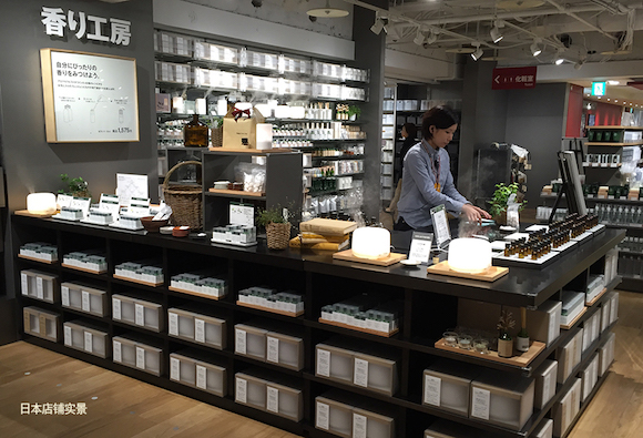 目前在日本MUJI門(mén)店?duì)I業(yè)的AROMA Labo香薰工坊。 另外,Re MUJI服飾商品群(將從生產(chǎn)到銷售過(guò)程中任何可利用的服裝產(chǎn)品重新染色后再上市的產(chǎn)品)、MUJI YOURSELF中除了印章和刺繡外新添加的禮品包裝、布面彩印等服務(wù)等也都是首次進(jìn)入中國(guó)。