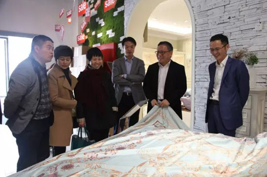 調研組一行參觀博洋家紡展示廳。 博洋家紡作為行業渠道創新的探路者,自2010年以來,其線上營銷取得了快速發展。博洋家紡總經理何平波透露,2013年博洋家紡營收同比增長了15%,2014年這一數字變為30%。寧波博洋控股集團有限公司副總裁蔣武吉指出,博洋家紡的不斷發展主要得益于新渠道擴展。“目前我們有線上、線下兩條渠道在擴展業務,都是獨立運營,連產品設計研發都是獨立的。” 雖然博洋家紡去年營收增速有所下滑,但是博洋家紡單店零售客單價過10萬的單子在不斷刷新紀錄,目前在國內擁有500多家專賣店,總計超過了600多個銷售網點。何平波介紹,目前銷售比較好的產品一是純棉類,二是數碼印花類,三是婚慶類。