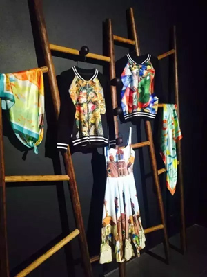 創(chuàng)意的“點(diǎn)亮”恰逢其時(shí) 近幾年,數(shù)碼印花技術(shù)的發(fā)展日新月異,精準(zhǔn)的色彩控制保留了畢昌煜油畫作品中那一抹最扣人心弦、令人驚嘆的繽紛之色。