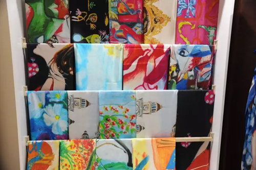“這是最早印上畢昌煜作品的面料。”畢光鈞拿出一件印有兩枝荷花圖案的連衣裙。當(dāng)時(shí),一家知名服裝供應(yīng)商來金點(diǎn)子紡織找面料,畢光鈞迎面看到,供應(yīng)商手中的面料上印有一幅畫,頓時(shí)靈光一現(xiàn),何不將兒子的作品印到面料上。 當(dāng)公司設(shè)計(jì)師將畢昌煜的油畫作品設(shè)計(jì)到面料上時(shí),因其色彩獨(dú)特、艷麗,這些面料制成成衣后效果非常好,至今已有幾萬米的銷量。