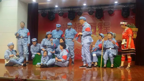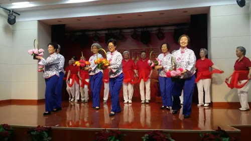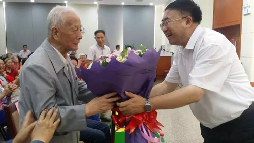 現場,常士偉為老紅軍、老黨員、99歲高齡、有著80年黨齡的原紡織工業部副部長謝紅勝獻花。 文藝演出會上,與會嘉賓濟濟一堂,紡織老同志與專業文藝演員精心準備了表演節目,老同志用優美的舞姿,動聽的歌聲,向黨的生日獻上最誠摯和最美好的祝福。