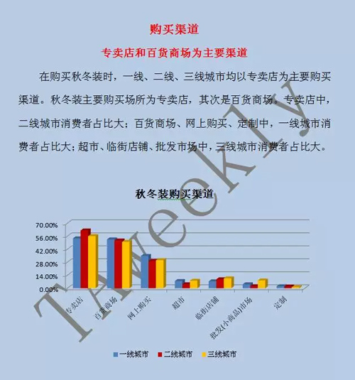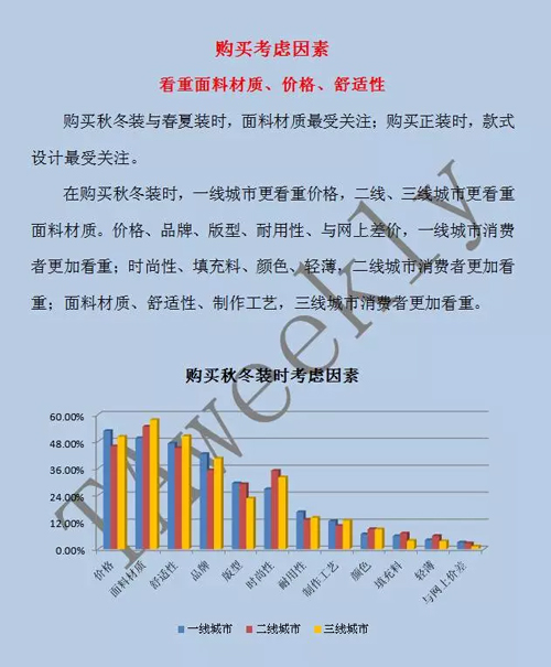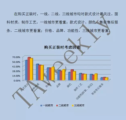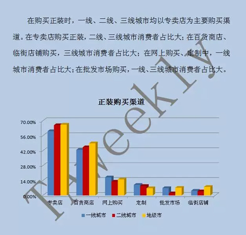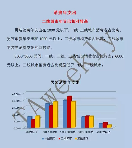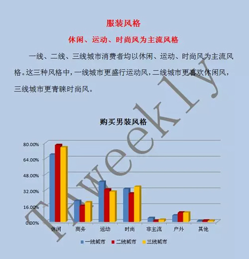 調研說明 為了深入了解男裝消費特點,中國·常熟男裝指數中心對全國在男裝消費與服裝產業發展方面具有代表性的城市進行了持續性消費者行為調研。 目前已調研的城市包括北京、廣州、成都、武漢、泉州、株洲。根據城市級別劃分,北京、廣州是一線城市的典型代表,成都、武漢為二線城市代表,泉州、株洲為三線城市代表,我們也據此劃分對一線、二線、三線城市進行男裝消費行為研究。 調研問卷共2433份,一線城市共808份(北京400份,廣州408份),二線城市共799份(武漢400份,成都399份),三線城市共826份(泉州409份,株洲417份)。