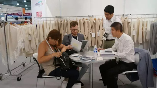 為了加強對外交流展示展銷,大朗毛織采取了“協會組團、企業參與”的方式。由東莞市毛紡織行業協會發動集群內毛織企業抱團參展,并積極暢通渠道,提供統一認購展位、簽證、申請、省、市、鎮有關參展補貼等服務,為企業參展提供便利。