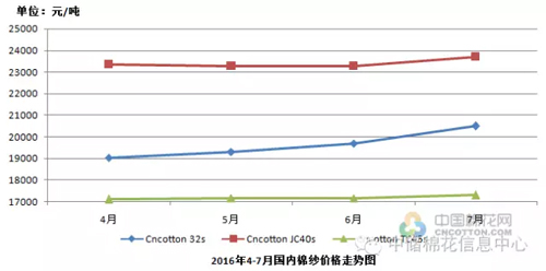 如上圖所示,4-7月份國內棉紗價格有所上漲,其中C32S漲幅最大,前后價差在1000元/噸以上,同期棉花價差則達到了2000元/噸以上,而鄭棉漲幅更是從10000元/噸左右的低位升至15000元/噸以上。棉紗價格漲幅明顯低于棉花,紡企利潤受到了擠壓。 新疆某棉企負責人表示,現在現貨價格較高,優質棉價格已經在14000元/噸以上了,而紡紗利潤較低,因此果斷停產并將自用的棉花原料高價銷售給其他紡企。 目前內外棉紗價格“倒掛”現象還沒有發生轉變,截至7月11日,C32S進口紗價格在21000元/左右,而C32S國產紗價格在20800元/噸左右,國產紗還保持一定競爭優勢,預計棉價還有上漲空間。 盡管下游紡企采購積極性下降,卻未能阻止棉價繼續上漲,此時的新疆紡企確實需要冷靜思考棉市動向,找出應對之策,一味靜觀其變未必是良策。在接下來的一段時期,市場又會發生哪些變化呢?敬請關注中國棉花網為您了帶來的相關報道。