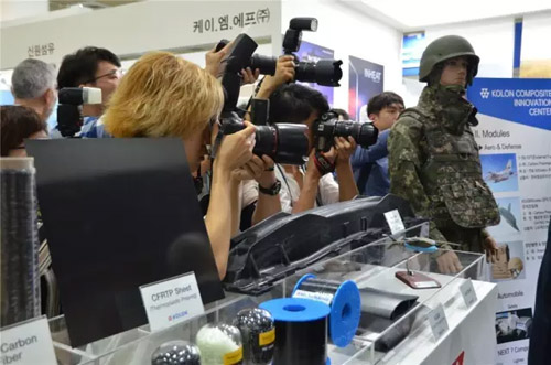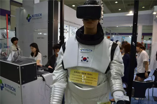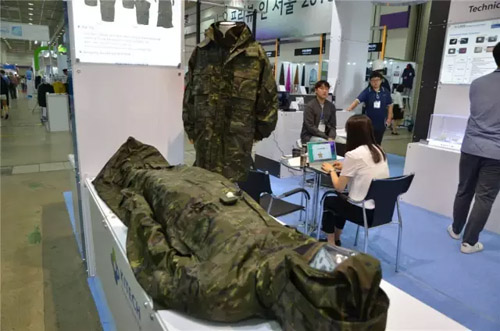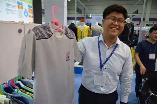 這里展示的是一項宇航服與VR設備相結合的技術,人們穿上它可體驗到太空行走的場景。 中國展商為何增加? 對于有374家企業參展的PIS展,中國參展企業就多達126家,有人說“是中國企業帶火了韓國展”,這一方面有展館面積擴大的因素,以及招展工作的積極推進;另一個重要外因在于杭州舉行的G20峰會。 紹興浙良紡織有限公司地處紹興柯橋,由于G20峰會的緣故,企業已經停產多日,開工日期在9月7日以后,“既然有空,就來韓國看看。”公司業務負責人徐興華說,TR彈力布全球只有紹興做得最好,“以前沒有關注過韓國市場,趁這個機會在韓國市場找找商機”。對于韓國市場,徐興華表示,美國訂單很多下給韓國,韓國又會找中國加工。公司此次帶來了針織粗針產品,用不同顏色、不同工藝、不同原料搭配,給人一種新奇的感覺。徐興華對自己的產品頗有信心,他深知,“如今已經不是拼價格的時候了,要有自己的開發能力,不搞新產品,就會被淘汰。”
