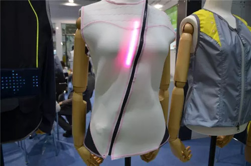 這款沖浪服可以感知水溫,不同溫度顯示不同顏色,溫度過低可以報警。 面對市場的疲軟,李曉萍認為,不創新就會形成惡性循環,競爭力也就越差。韓國人知道創新需要高成本,但明知高成本也要開發,推出新東西保持優勢。她說,訂單少了,大家要抱團取暖。現在是大浪淘沙的時期,自己還站在岸上是因為保持技術含量,用經驗獲得靈感,敏銳感知流行趨勢,時刻為客人著想。 當問及她看好哪些面料時,李曉萍笑著說“這是商業秘密。”但從她輕松的表情中,記者能感到她的收獲不會小。展會間歇,她還走訪了樂天百貨、東大門、現代百貨、新世界百貨等時尚前沿,靠著過硬的技術眼光和敏銳的觸覺,李曉萍感到韓國此行收獲頗豐。