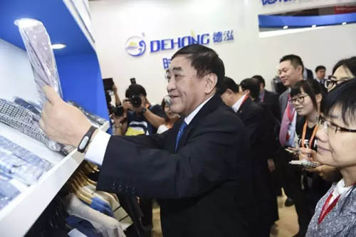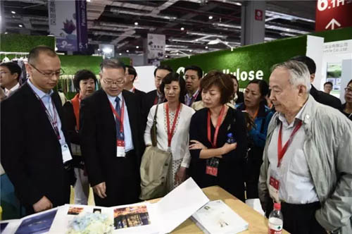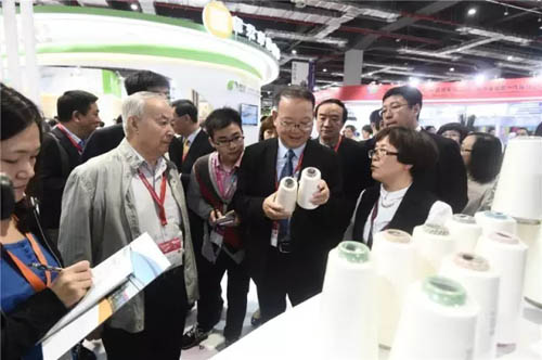 今年展后區別于以往,參展企業均圍繞“功能性”紛紛推出了自己的新品,而這也恰是展會主辦方所大力倡導的,本屆展會首次發布的“中國功能性針織產品流行趨勢”吸引了大批觀眾駐足參觀,展會科技創新氣息濃厚,轉型升級思路清晰。 2016yarnexpo秋冬紗線展 與科技創新同行,引領產業發展未來 上午,中國紡織工業聯合會秘書長高勇,副會長楊紀朝、孫淮濱,原副會長徐文英等領導一行開始了2016yarnexpo秋冬紗線展的首場參觀。