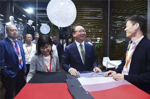 在參觀完博拉纖維后,高勇一行來到無錫一棉紡織集團的展位。據了解無錫一棉此次參展的品牌為“太湖”TALAK,主要展示的有高支襯衫的面料。無錫一棉董事長周曄珺透露,目前公司生產的200支紗的產品在客戶中的關注度非常高,隨著市場的需求層次變得越來越高,200支以上的產品開始被下游企業接受,已經進行批量化大規模生產。 看完無錫一棉的超細天絲高支緊密紡產品和全棉特高支針織面料后,中紡聯副會長孫淮濱對企業的發展提出了建議,他表示,十三五期間,無錫一棉這樣的大企業如何在紡織領域實施三品戰略,是值得關注的話題,在行業內希望企業之間加強溝通,把新技術和新產品進行落地。