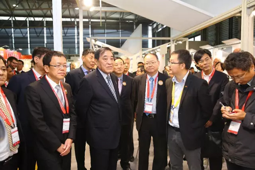 10月的上海,秋意濃濃。今天,2016年中國國際產業用紡織品及非織造布展覽會(CINTE)在上海浦東新國際博覽中心拉開帷幕。來自全球26個國家和地區的近500家展商匯聚上海,參加“十三五”開局之年的行業盛會。 還不到9點,新國際博覽中心登記處就排起了長隊。9時30分,中紡聯黨委書記王天凱、原會長杜鈺洲、會長孫瑞哲、秘書長高勇,黨委副書記陳偉康,紀委書記王久新,副會長徐迎新,副會長、中國產業用紡織品行業協會會長李陵申,中紡聯原副會長張延愷、徐文英等行業領導在展會主辦方負責人、法蘭克福展覽公司高級總經理溫婷等陪同下分兩路參觀了展會。