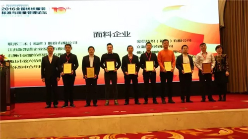 | “2016全國(guó)紡織行業(yè)質(zhì)量管理示范單位”頒獎(jiǎng)典禮舉辦 |