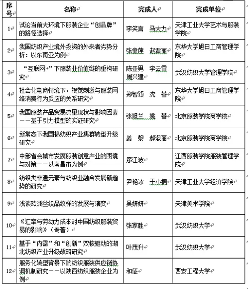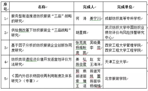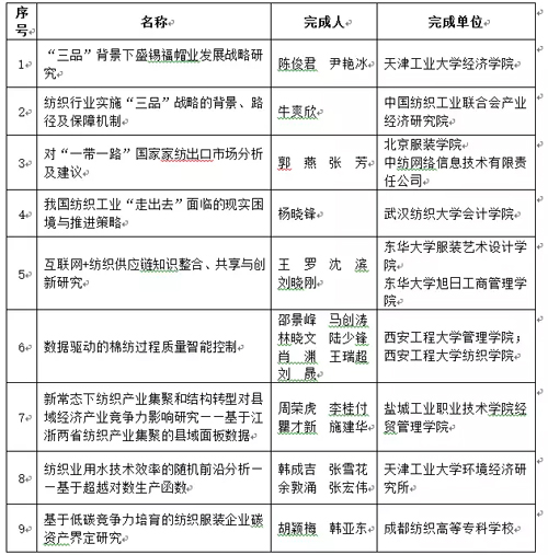 2016年度中國紡織工業聯合會 經濟研究成果獎
