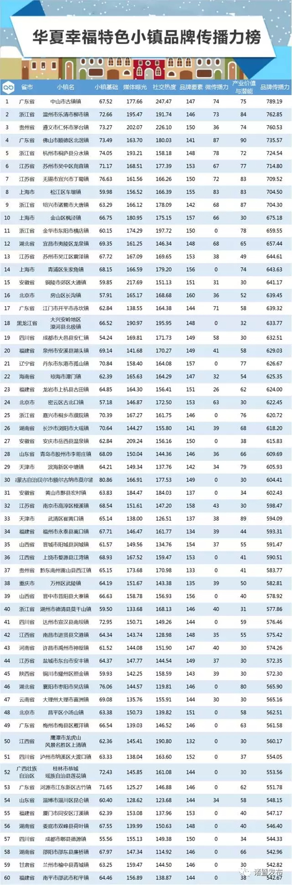 蔣建云/文 12月17日,“創新與融合——國家形象與戰略傳播”2016清華國家形象論壇在京舉行,華夏幸福、清博大數據與清華大學國家形象傳播研究中心合作發布“華夏幸福特色小鎮”品牌傳播力指數,諸暨市大唐鎮以704.30的高分位列全國127個中國特色小鎮排名第9位。 華夏幸福特色小鎮品牌傳播力榜: