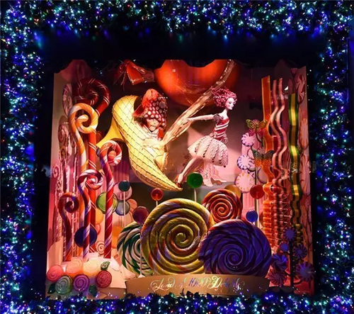 《Magic》夢幻主題櫥窗內飾 Saks Fifth Avenue 精品百貨店于 1924 年開始營業,定然也是紐約購物地標之一。今年的窗展主題是“1000 個樂趣之地”,大量運用糖果元素,渲染了整個節日氣氛。