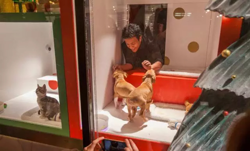 本次舊金山櫥窗揭幕活動與SPCA愛護動物協會聯合舉辦,在場觀眾可立即將小動物認領回家哦!