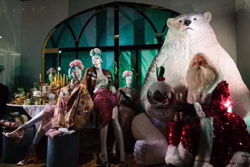 倫敦 倫敦的櫥窗設計更加凸顯鬼馬風格,宏大的敘事場面與戲劇化的情景結合彰顯獨特的儀式感。童話與現代的碰撞顯得十分有趣。 Selfridges "圣誕老人的 Disco" 這家于 1909 年創立的百年老店今年將經過盛裝打扮的圣誕老人提前請到牛津街,開展了雪地上的時尚派對。