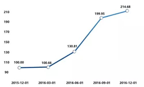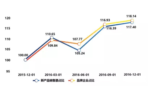 2、新花型推出指數 2016年第四季度新花型推出指數達127.78點,較第一季度增加22.05點,增幅為20.85%。 圖1-3 新花型推出指數