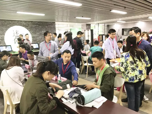 煌駿紡織:對接會“鐵桿粉絲”,專業性更強 這次國內對接會上,不乏千客萬商的“鐵桿粉絲”,煌駿紡織便是其中一家;無論是國內外場次的對接會,還是盛澤面料萬里行活動,都能看到煌駿紡織的身影。作為展會以及對接會上的“老江湖”,煌駿紡織朱經理也是提前做好功課,有備而來;緊抓今年來市場的時尚潮流元素,攜帶風格各異的新產品樣布,主推時尚女裝面料系列。據悉,其中一款blingbling視覺感的人棉彩緞面料,在對接會上深受多家采購商的青睞,此面料不僅有“顏值”,由于是錦綸與人棉交織產物,功能性更優。 采購商:男女裝、孕嬰童裝、家紡類全覆蓋 這次獲邀前來的40多位采購商,都來自于品牌服裝企業以及知名進出口公司;幾乎是覆蓋了男裝、女裝、孕嬰童系列以及家紡類等全方面產業鏈。旨在與采購商進行多元的接觸,通過對接會打造產業鏈的無縫對接,實現與織造廠家的零距離交流。