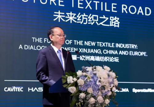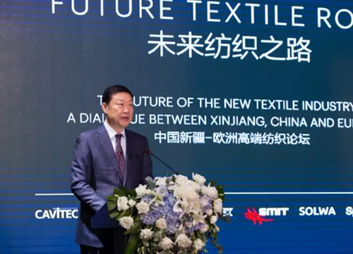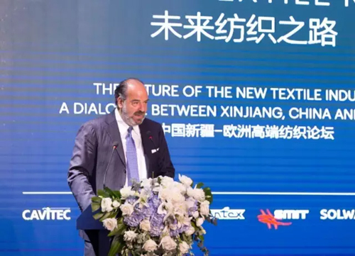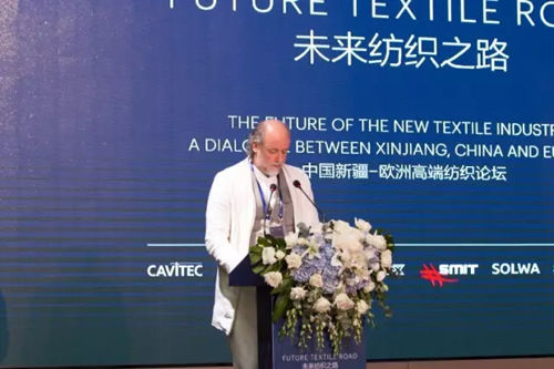 本刊記者-李曉慧 5月15日,習近平主席在“一帶一路”國際合作高峰論壇上發表了題為《攜手推進“一帶一路”建設》的主旨演講,提出了創新全球治理的中國方案,為破解全球化進程挑戰籌劃了更清晰的行動綱領,也給作為絲綢之路經濟帶核心區的新疆帶來了重大的歷史機遇。 16日,“未來紡織之路——中國新疆-歐洲高端紡織論壇”在新疆烏魯木齊希爾頓酒店舉行。論壇旨在重返絲綢之路,開啟亞洲大陸與地中海區域紡織領域的新對話,齊聚了國內外紡織巨頭以及來自歐洲的創意先鋒,共同探索新疆高端紡織業的未來發展潛力。 5月16日,“未來紡織之路——中國新疆-歐洲高端紡織論壇”舉行,本次論壇由新疆紡織服裝就業領導小組辦公室、中國紡織信息中心和桑德森力瑪集團(Santex Rimar Group)共同舉辦。