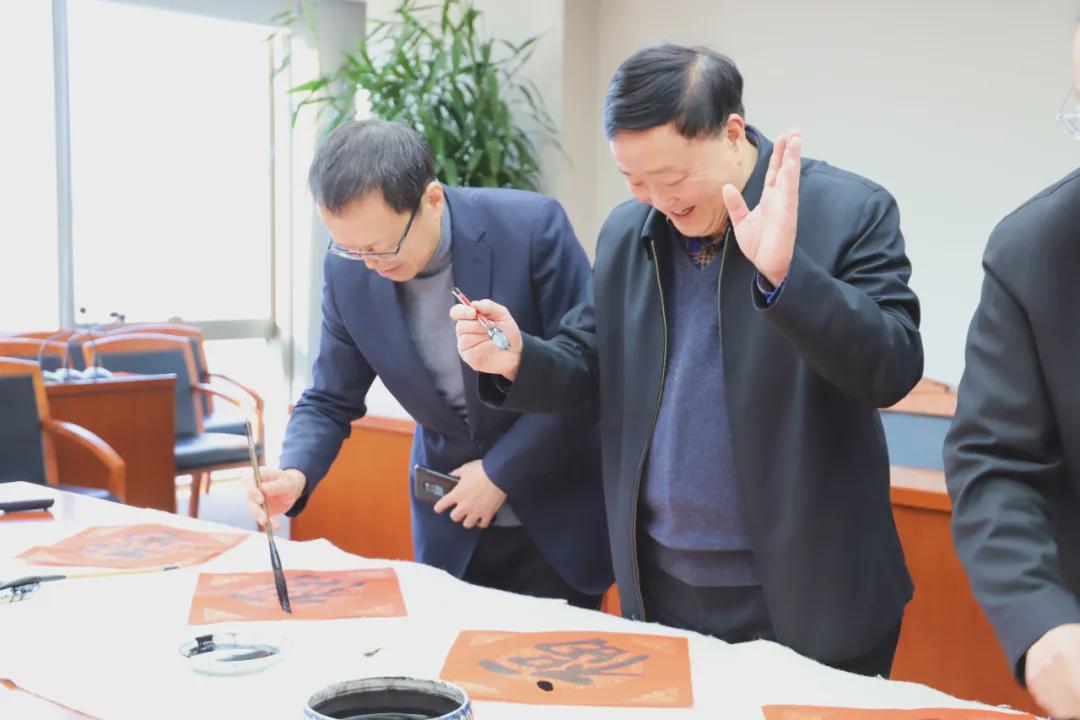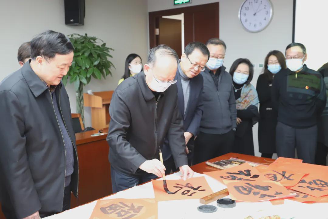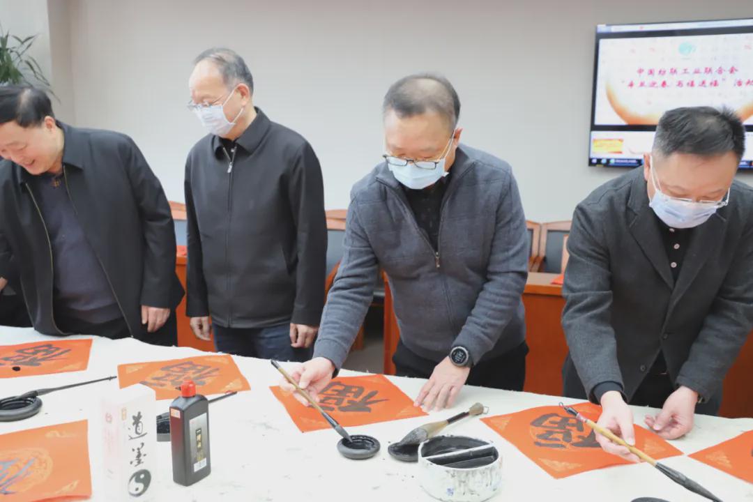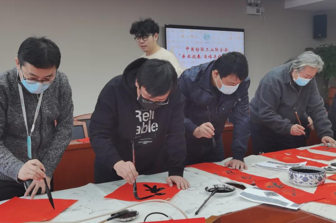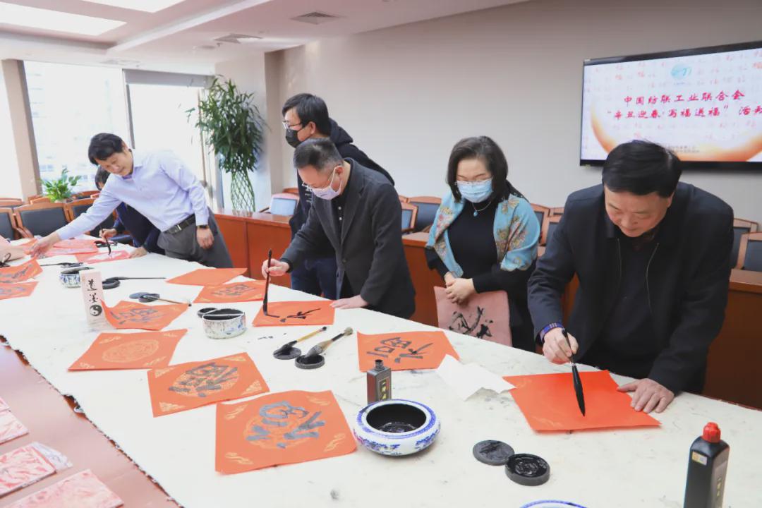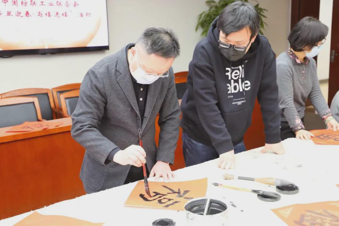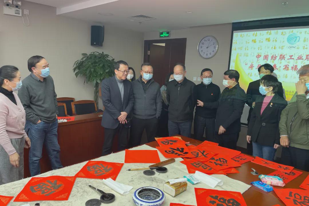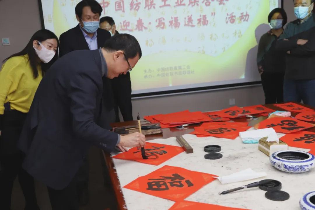 伴隨著《喜洋洋》喜慶的旋律,中國(guó)紡織工業(yè)聯(lián)合會(huì)黨委書(shū)記兼秘書(shū)長(zhǎng)高勇,會(huì)長(zhǎng)孫瑞哲,黨委副書(shū)記陳偉康,紀(jì)委書(shū)記王久新,副會(huì)長(zhǎng)徐迎新、李陵申、端小平、楊兆華、孫淮濱等領(lǐng)導(dǎo)步入會(huì)場(chǎng)與中國(guó)紡聯(lián)工會(huì)委員代表、書(shū)畫(huà)聯(lián)誼社社員、職工代表一起“點(diǎn)福送福”“寫(xiě)福傳福”共迎新春,向中國(guó)紡聯(lián)全體干部職工和全國(guó)紡織行業(yè)2000萬(wàn)干部職工送上最“牛”祝“福”。